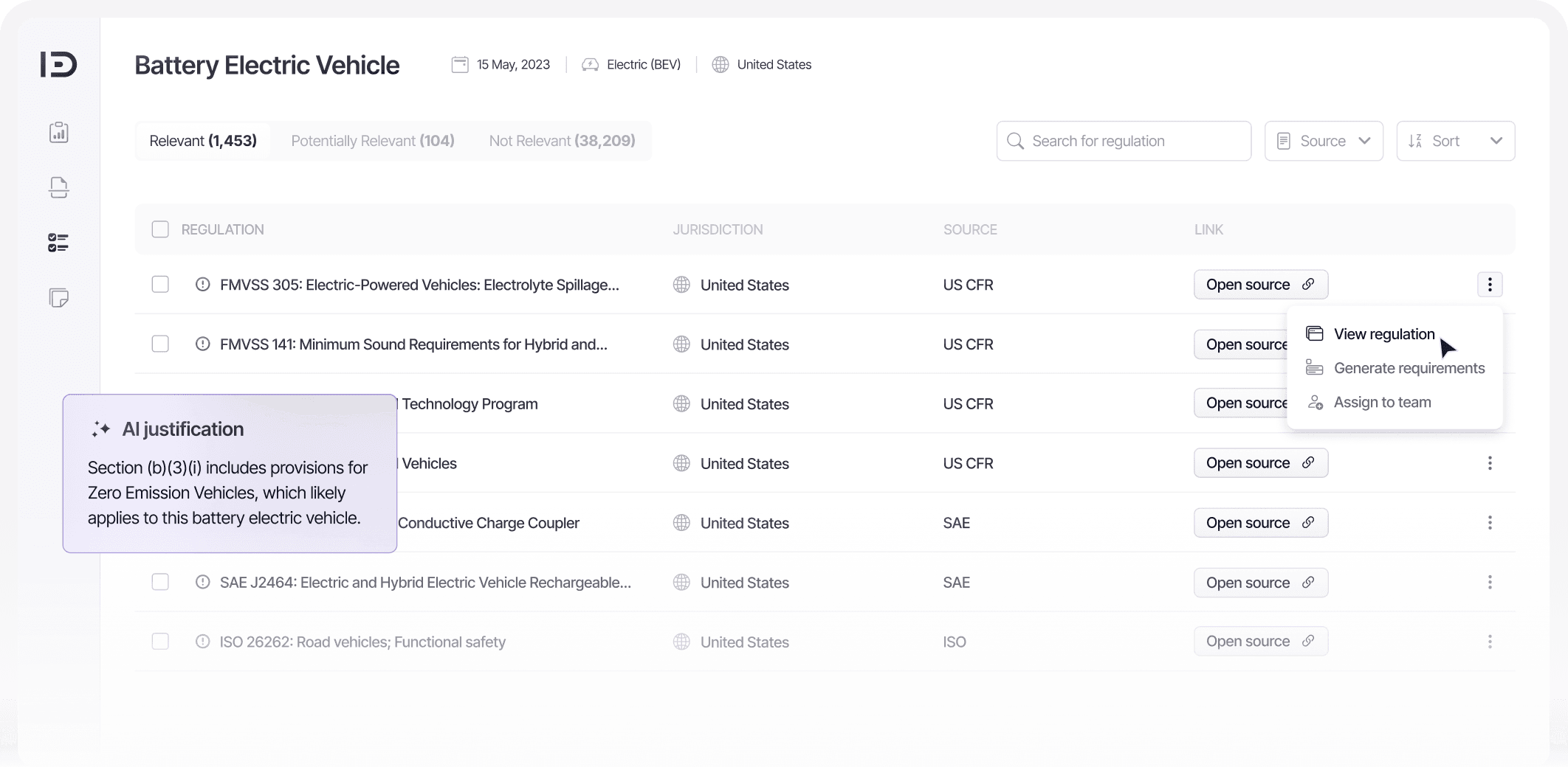 Interact with our AI agent to quickly review and finalize identified regulations.